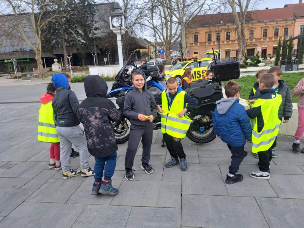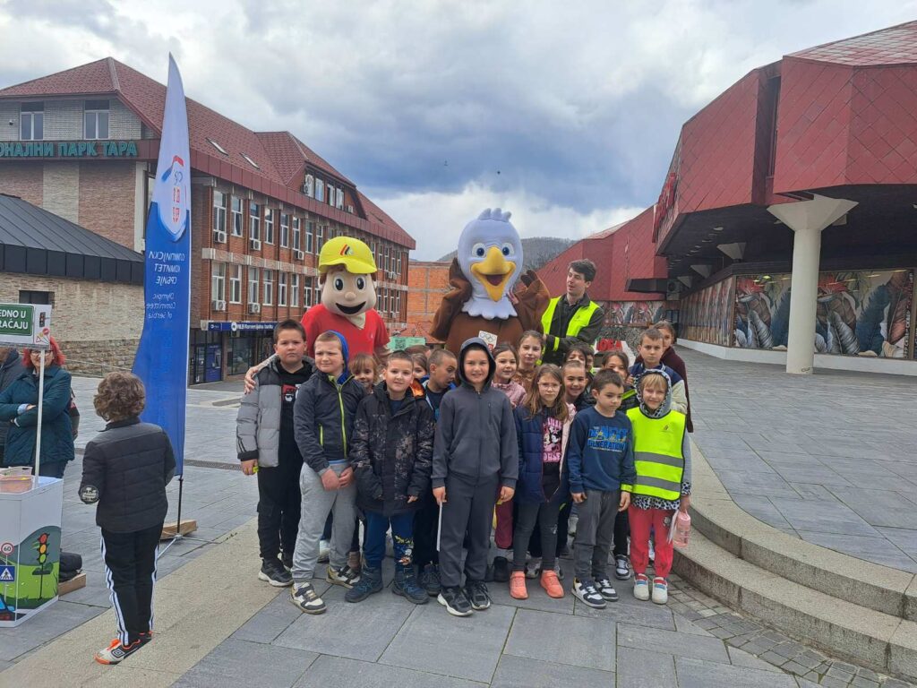 Ученици првог и другог разреда данас су присуствовали Каравану безбедности на Тргу у Бајиној Башти, где су прошли неколико радионица и гледали представу о Пажљивку. Обновили су своје знање о саобраћајним правилима и лепо се забавили. ![]()